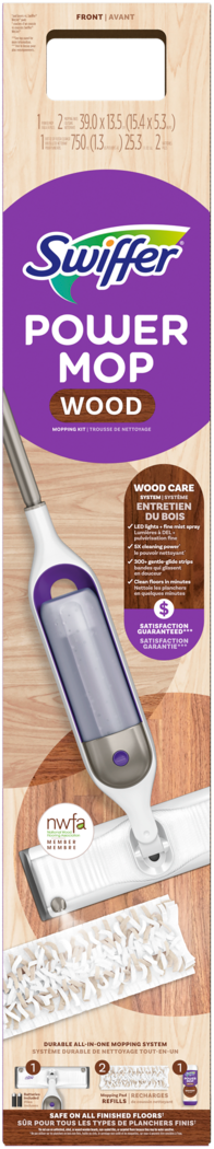 Swiffer Power Mop Wood Mopping Kit 1 Power Mop + 2 Mopping Pad Refills + 1 Floor Cleaner + 2 Batteries